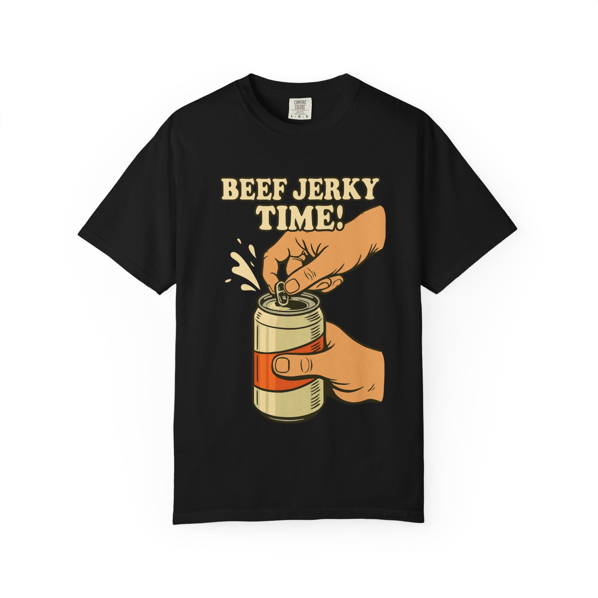 Crack a cold one and let the good times marinate with this bold Beef Jerky Time tee — a cheeky nod to that one perfect moment where beer and snacks collide in glorious harmony. Whether you're posted up at a BBQ, kicking back after work, or just vibing through the weekend, this shirt delivers flavor without saying a word. Kudos if you know where this quote comes from!