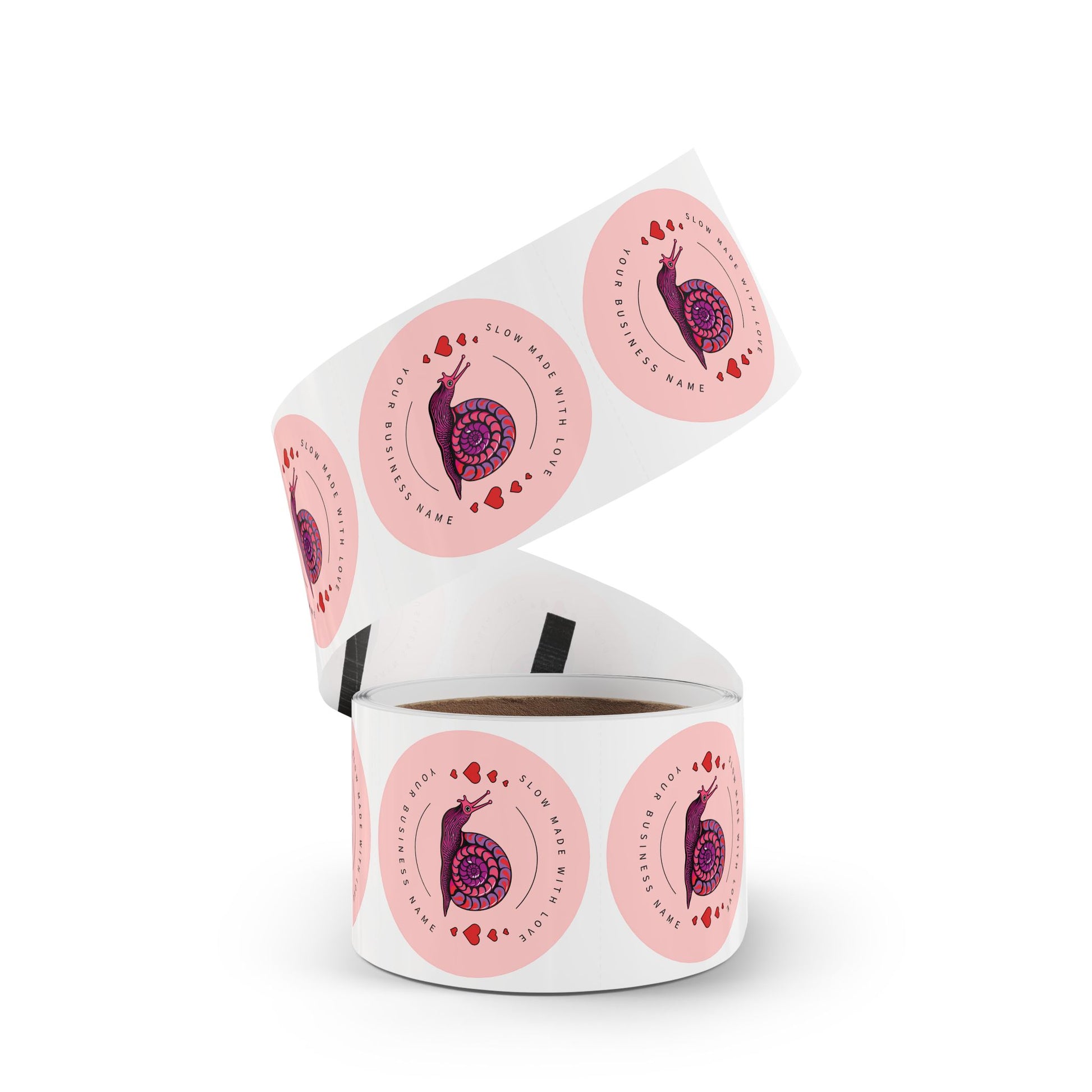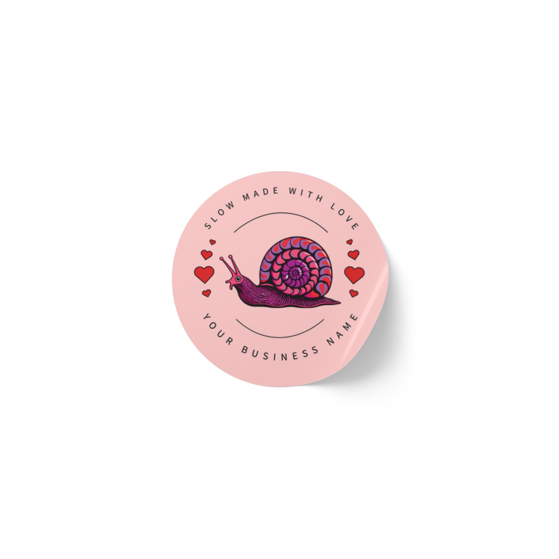 These “Slow Made with Love” customizable sticker rolls feature an irresistibly cute pink snail, soft hearts, and a cheerful pink background — perfect for makers who embrace intentional creation and heartfelt packaging.