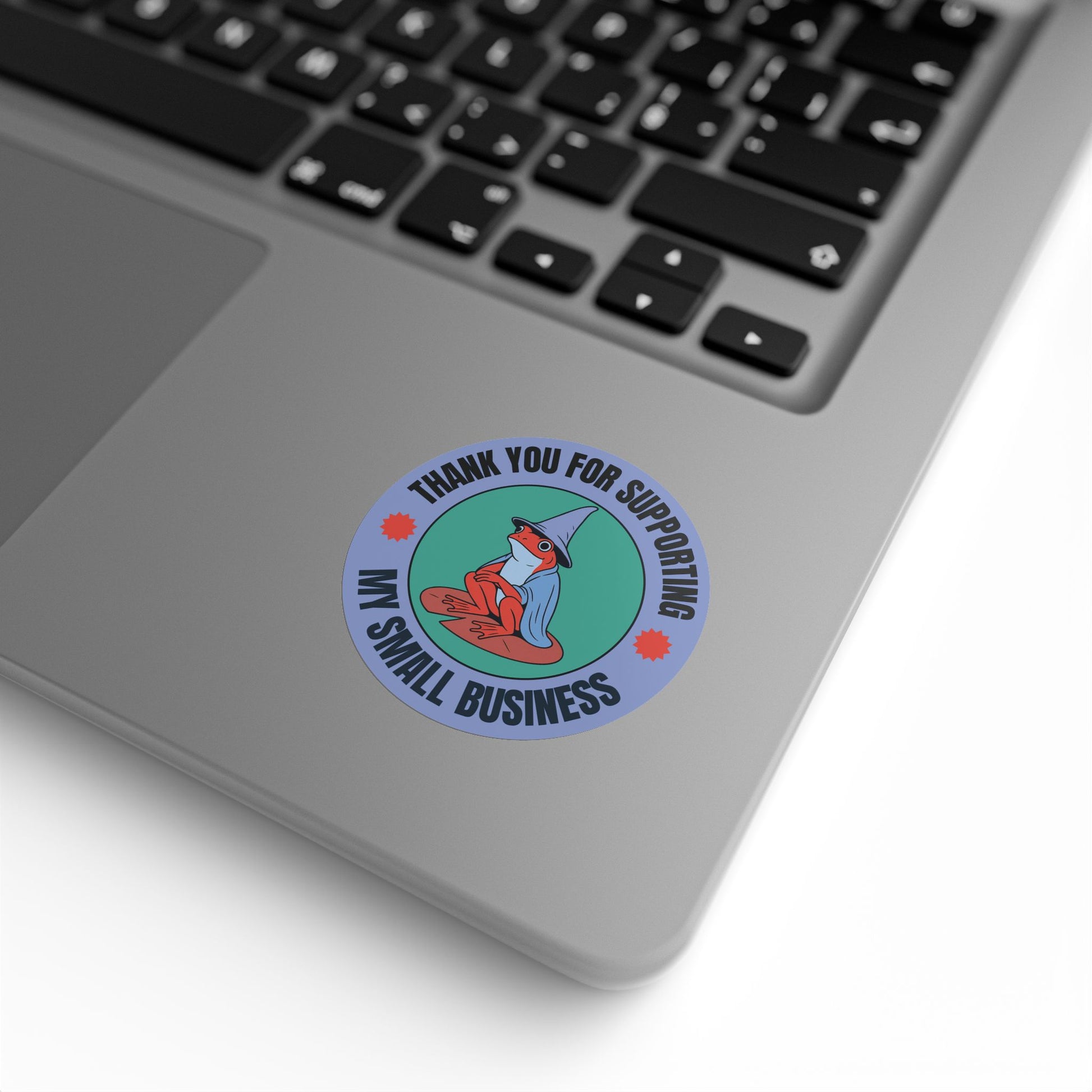 Add a little enchantment to your packaging with the Wizard Frog “Thank You” Sticker Roll, featuring a red frog in full wizard mode — arms crossed on a lilypad, against a bold blue background. With text that reads “Thank you for supporting my small business,” these vibrant 2x2 stickers are the perfect finishing touch for makers, crafters, and artists who like a little personality with their professionalism.